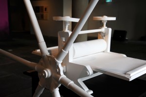 Das fragile Objekt steht durch seine Beschaffenheit in grossem Gegensatz zur „Schwarzen Kunst“, der Schwerfälligkeit von Druckpressen. Die Druckpresse, ursprünglich ein Gebrauchsgegenstand, wird hier zum Kunstobjekt.