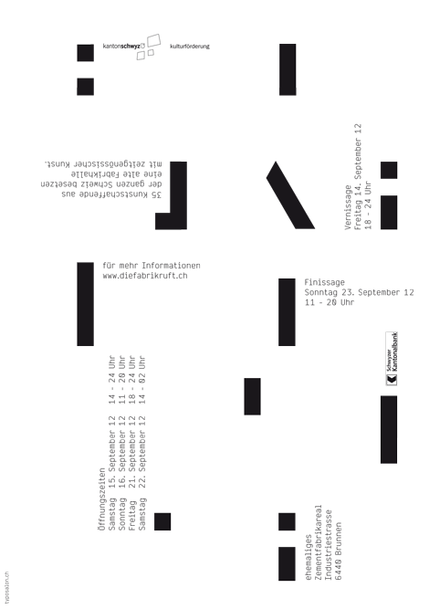 Konzipierung eines Vermittlungsangebotes für Menschen mit Behinderung zu den Themen Inklusion und Barrierefreiheit für die temporären Ausstellung SCHWYZWEIT über Arbeiten aus der kantonalen Kunstsammlung im Frühling 2012 im Zeughaus Seewen-Schwyz und im Elektrizitätswerk in Lachen.