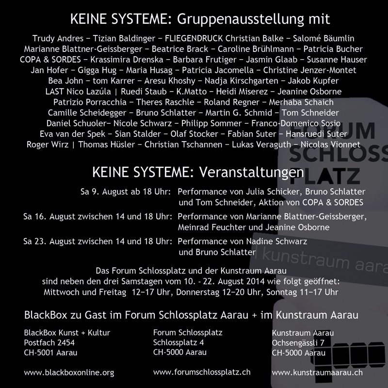 18. August 2024 von 14 bis 17 Uhr (Performance von René Gisler «key not lecture» um 15 Uhr)